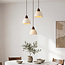 Die drei hängenden Lichtpunkte der Hängelampe Marena sorgen für einen spielerischen und räumlichen Effekt. Die Travertin-Schirme in Kombination mit den warmen Holzdetails verleihen der Lampe ein natürliches, Japandi-Flair. Dank der runden Deckenplatte und der höhenverstellbaren Textilkabel schaffen Sie einfach eine schöne Verteilung, geeignet über einem Esstisch oder in einer Galerie. Das Licht wird sanft nach unten gestreut für eine warme Atmosphäre im Raum. Ausgestattet mit drei E27 Fassungen (Leuchtmittel nicht enthalten), damit Sie die gewünschte Lichtstärke und Optik selbst bestimmen können.