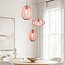 Velora ist mit drei Stoffschirmen in rosa ausgestattet, die jeweils an einem gewebten Textilkabel in der gleichen Farbe befestigt sind. Die Leuchte hat eine runde Deckenplatte (Ø35 cm) und wird komplett montiert geliefert - Sie brauchen also nichts selbst zu montieren.