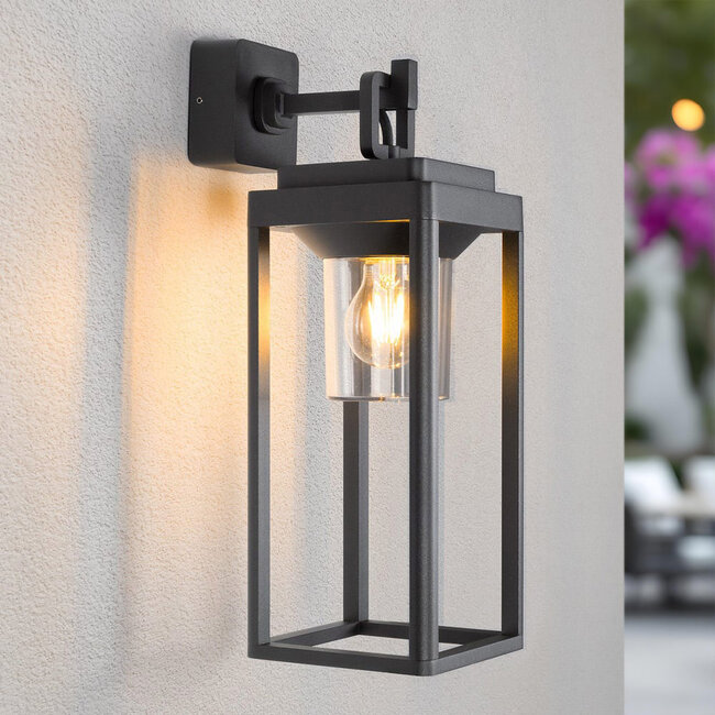 Cristiano ist eine Lampe, die Sie an Ihrer Außenwand haben möchten, wenn Sie eine moderne und stimmungsvolle Außenleuchte suchen. Diese Leuchte kombiniert ein zeitgenössisches Design mit einem Hauch von klassischem Charme und schafft so einen einzigartigen Stil. Der offene, anthrazitfarbene Rahmen der Leuchte verleiht ihr einen luftigen und minimalistischen Look. In der Mitte des Rahmens befindet sich die Fassung (Leuchtmittel nicht enthalten). Wählen Sie eine warme LED-Birne und sorgen Sie für gemütliches Licht. Damit ist Cristiano ideal für die Beleuchtung der Haustür oder des Gartens. Die Lampe bietet nicht nur eine funktionelle Beleuchtung, sondern dient auch als dekoratives Element, das dem Außenbereich Eleganz verleiht. Ihr modernes und schlichtes Design lässt die Lampe sowohl tagsüber als auch nachts stilvoll aussehen.