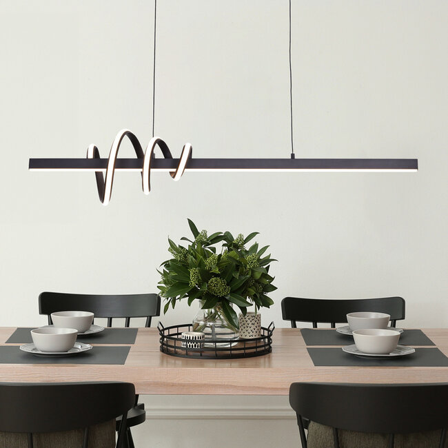 Fehlt Ihrem Zuhause ein einzigartiger Blickfang? Merle ist die Pendelleuchte, nach der Sie suchen. Merle verbindet Design mit Funktionalität. Die dunkelgraue Pendelleuchte besteht aus integrierten LEDs über die gesamte Länge und hat an einer Seite gedrehte LEDs, die um den Rahmen herum sitzen. Die LEDs sind 3-stufig dimmbar, sodass Sie die Helligkeit steuern können. So können Sie bei einem gemütlichen Spieleabend oder Abendessen mit Merle die perfekte Beleuchtung einsetzen.