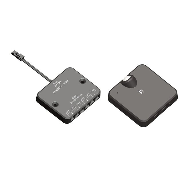 Der Funk-Touch-Dimmer ist Teil eines Plug-and-Play-Systems. Sie schließen ihn an die Ausgangsseite des Transformators an.