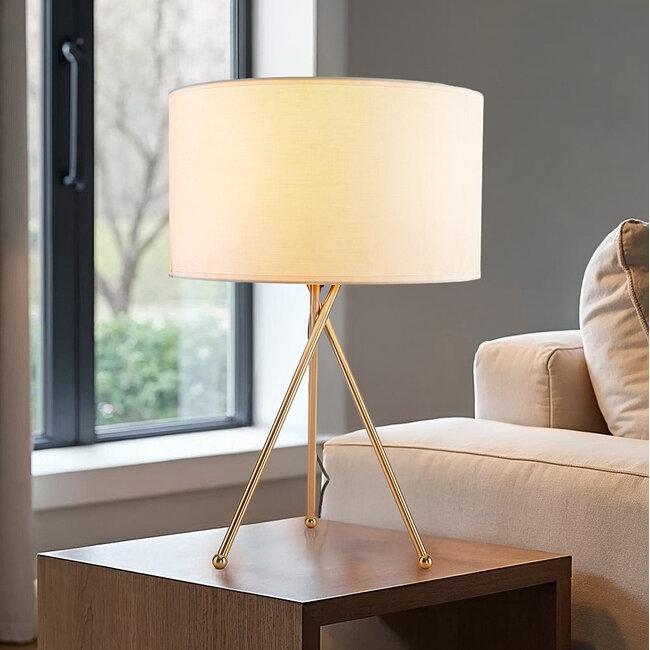 Diese schicke Tischleuchte strahlt pure Eleganz aus. Das goldene Finish der Beine verleiht dem Ganzen Luxus und macht die Lampe zu einem auffälligen Prunkstück. Der Lampenschirm aus Stoff sorgt für eine warme und gemütliche Atmosphäre. Das Design von Susan ist raffiniert und minimalistisch, sodass sie sich mühelos in eine Vielzahl von Einrichtungsstilen einfügt, von modern bis klassisch. Ob als glamouröser Akzent in einem schicken Wohnzimmer oder als elegante Beleuchtungsoption für ein Schlafzimmer, diese Tischleuchte verleiht jedem Raum einen Hauch von stilvoller Raffinesse.