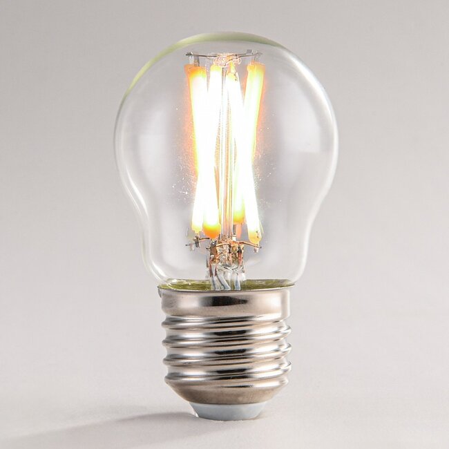 Diese dim-to-warm 4,9-Watt-Lapme eignet sich hervorragend für die stimmungsvolle Beleuchtung Ihres Wohnzimmers, Ihrer Terrasse, Ihrer Gastronomie oder Ihres Büros. SIntelligente Glühbirnen sind die neueste Entwicklung auf dem Gebiet der LED. Filament schließt die Lücke zwischen dem gemütlichen Aussehen der altmodischen Glühlampe auf der einen Seite und dem sehr niedrigen Energieverbrauch und der langen Lebensdauer der LED-Glühlampe auf der anderen Seite. Der Glasschirm der Lampe erzeugt einen originellen Lichteffekt. Der Glühfaden in der Lampe ist deutlich sichtbar und macht die Lampen zu einem echten Hingucker. Die Lampen lassen sich gut mit unseren Illu-Lichterketten kombinieren. Diese Lampen haben einen Durchmesser von 45 mm.