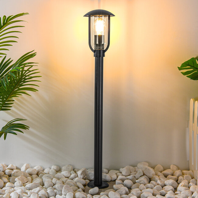 Die schwarze Sockelleuchte ist 80 cm hoch, hat eine Breite von 14,5 cm und kann nicht in der Höhe verstellt werden. Die Leuchte ist einfach über einen Wandschalter oder Dimmer (nicht im Lieferumfang enthalten) zu bedienen. Die Leuchte ist einfach auf einer gepflasterten Fläche mit den beiliegenden Schrauben zu installieren. Falls Sie die Stehleuchte auf einem weichen Untergrund befestigen wollen, können Sie dies ganz leicht mit dem Erdspieß Enzo tun. Diese ländliche Außenlampe hat eine E27-Fassung und wird ohne Leuchtmittel geliefert. Möchten Sie Ihre Gartenbeleuchtung vervollständigen? Kombinieren Sie diese Stehleuchte mit der schwarzen Wandleuchte Davide für ein schönes Ganzes. Auf diese Weise können Sie Ihren Außenbereich in einen stimmungsvollen Ort verwandeln, auch wenn es dunkel ist.