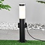 Diese Sockelleuchte mit zwei Steckdosen ist 50 cm hoch und hat einen Durchmesser von 12 cm. Sie eignet sich für viele Einsatzorte. Die Leuchte kann einfach auf einem festen Untergrund montiert oder mit einem Erdspieß befestigt werden. Die Lampe besteht aus Edelstahl in Anthrazit und ist mit einem milchweißen Schirm ausgestattet, der das Licht der E27-Lichtquelle weich streut. Die Beleuchtung schaltet sich gleichzeitig mit den Steckdosen ein und kann nicht separat gesteuert werden. Weitere Informationen finden Sie in der Anleitung.