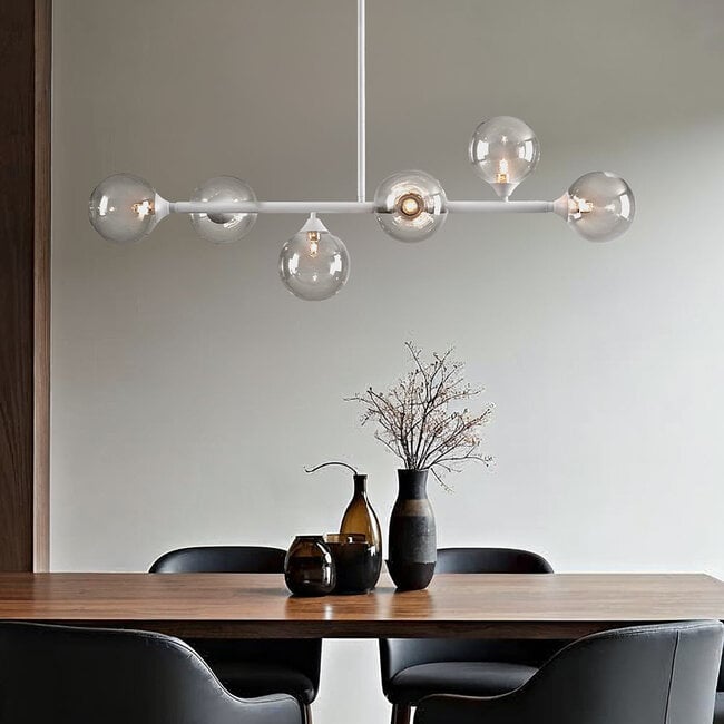 Eine Deckenleuchte mit zeitlosem Design, die in jedes Interieur passt. Das ist Aster. Die Lampe hat ein schlankes Design mit sechs spielerisch platzierten Kugeln. Die Kombination aus der Stahlhalterung und den Glaskugeln bringt Ruhe in Ihren Raum, macht diese Pendelleuchte aber gleichzeitig zu einem echten Blickfang. Aster eignet sich hervorragend für den Esstisch oder die Küchenbar. In Kombination mit den klaren LED-Lichtquellen gibt die Leuchte ein stimmungsvolles Licht ab.
