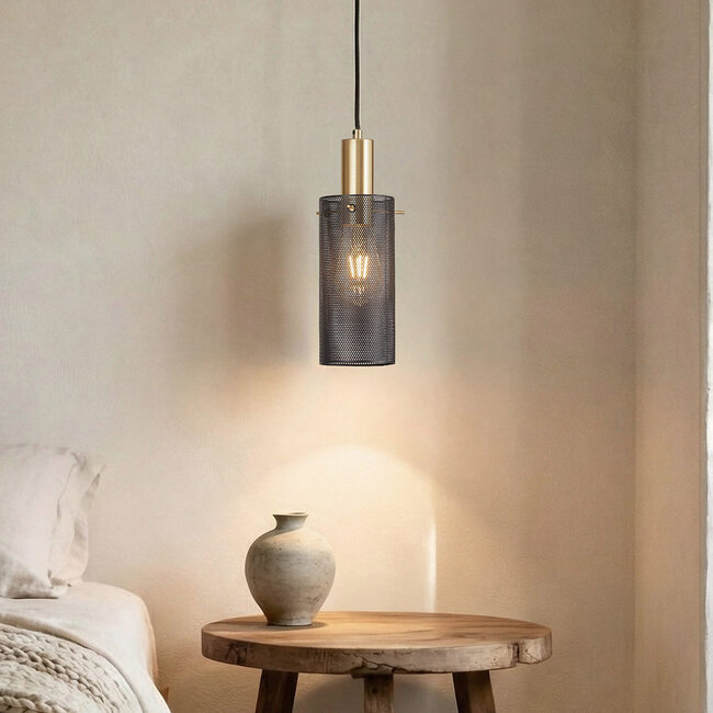Der Durchmesser des Lampenschirms beträgt 10 cm bei einer Höhe von 22 cm. Die maximale Aufhängehöhe der Lampe beträgt 155 cm und die Deckenplatte ist 2,5 cm hoch, mit einem Ø von 9 cm. Die Lampe ist aus hochwertigem Eisen gefertigt und leicht zu kürzen. So können Sie wählen, wie hoch oder niedrig die Lampe hängt.