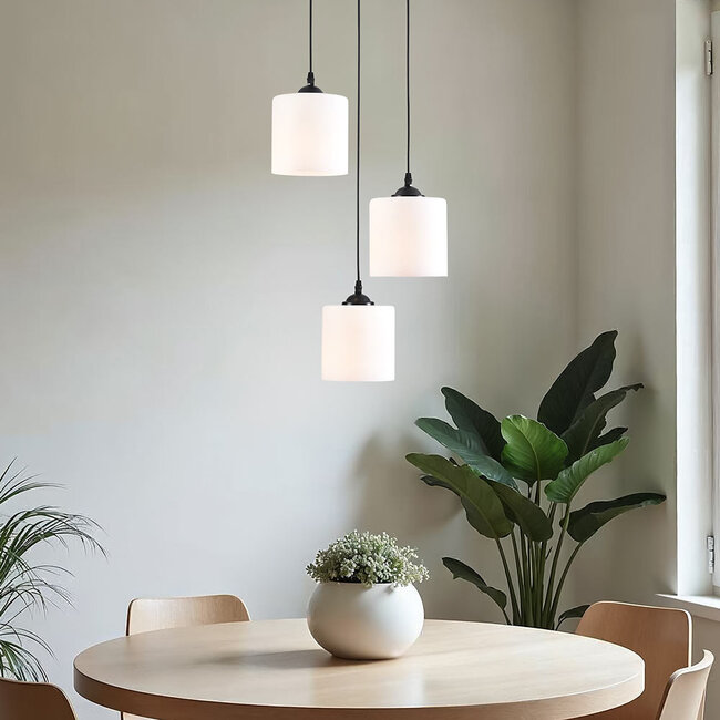 Sind Sie auf der Suche nach einem Mittelweg zwischen Schlichtheit und Verspieltheit? Dann ist Kezia die Leuchte, die Sie suchen. Diese moderne Hängeleuchte besteht aus drei Zylindern aus milchweißem Glas, von denen jeder in einer anderen Höhe hängt. Die Höhe der Hängeleuchten kann nach Belieben eingestellt werden, sodass Sie die ideale Hängeleuchte für jeden Raum kreieren können. Kezia ist eine schöne und ruhige Lampe, die man gerne anschaut. Das milchig weiße Glas verleiht dem Licht einen besonderen Glanz, vor allem in Kombination mit warmen (dimmbaren) LED-Lampen. Auch im ausgeschalteten Zustand ist diese Pendelleuchte eine stimmungsvolle Ergänzung Ihrer Einrichtung.
