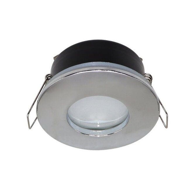 Der Einbaustrahler hat die Schutzart IP44 und ist spritzwassergeschützt. Rex eignet sich daher für den Einsatz im Badezimmer oder im Garten, sieht aber auch im Haus nicht schlecht aus.