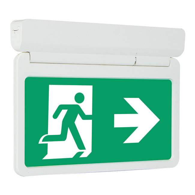 Die Notleuchte LX003 ist eine praktische Leuchte, die sowohl an der Decke als auch an der Wand angebracht werden kann. Der 90-Grad-Winkel ermöglicht den Einsatz der Leuchte an verschiedenen Orten. Die Leuchte verfügt über einen Selbsttest, einen Funktionstest und einen Dauertest.