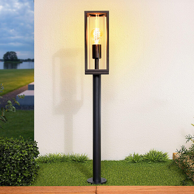 Welche Lampe eignet sich besser zur Vervollständigung Ihres Gartens als die Sockelleuchte Teddy? Wir sind uns sicher, dass diese Leuchte in vielerlei Hinsicht überragend ist. Die Leuchte hat eine mattschwarze Farbe, eine schlanke Form und eine Glaskappe in der Mitte der Leuchte, um die Lichtquelle vor Witterungseinflüssen zu schützen. Die Leuchte ist quadratisch und erhält durch den runden Aluminiumsockel, auf dem die Laterne steht, mehr Höhe.