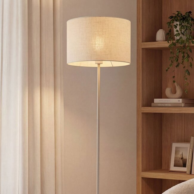Der Leinen-Schirm der Stehleuchte Avana sorgt für eine warme und weiche Lichtverteilung im Raum. Das schlanke Metallgestell in Beige verleiht der Lampe ein ruhiges und zeitloses Aussehen, wodurch sie einfach mit verschiedenen Einrichtungsstilen kombinierbar ist. Dank des minimalistischen Designs kommt Avana neben einem Sofa oder Sessel, aber auch in einem Schlafzimmer oder einer Leseecke gut zur Geltung. Ausgestattet mit einer E27 Fassung (Leuchtmittel nicht im Lieferumfang enthalten) und einem 1,8 Meter langen Kabel mit Schalter für einfache Bedienung.