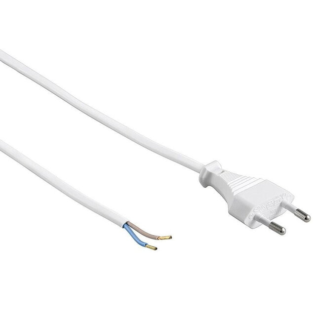 Dieses Kabel ist 2 Meter lang und verfügt einerseits über einen Eurostecker und andererseits über zwei Drähte und ist für den Anschluss an bis zu 230 V geeignet.